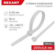 Хомут кабельный 3.6х300 петлевой нейлон бел. (уп.100шт) Rexant 07-0300